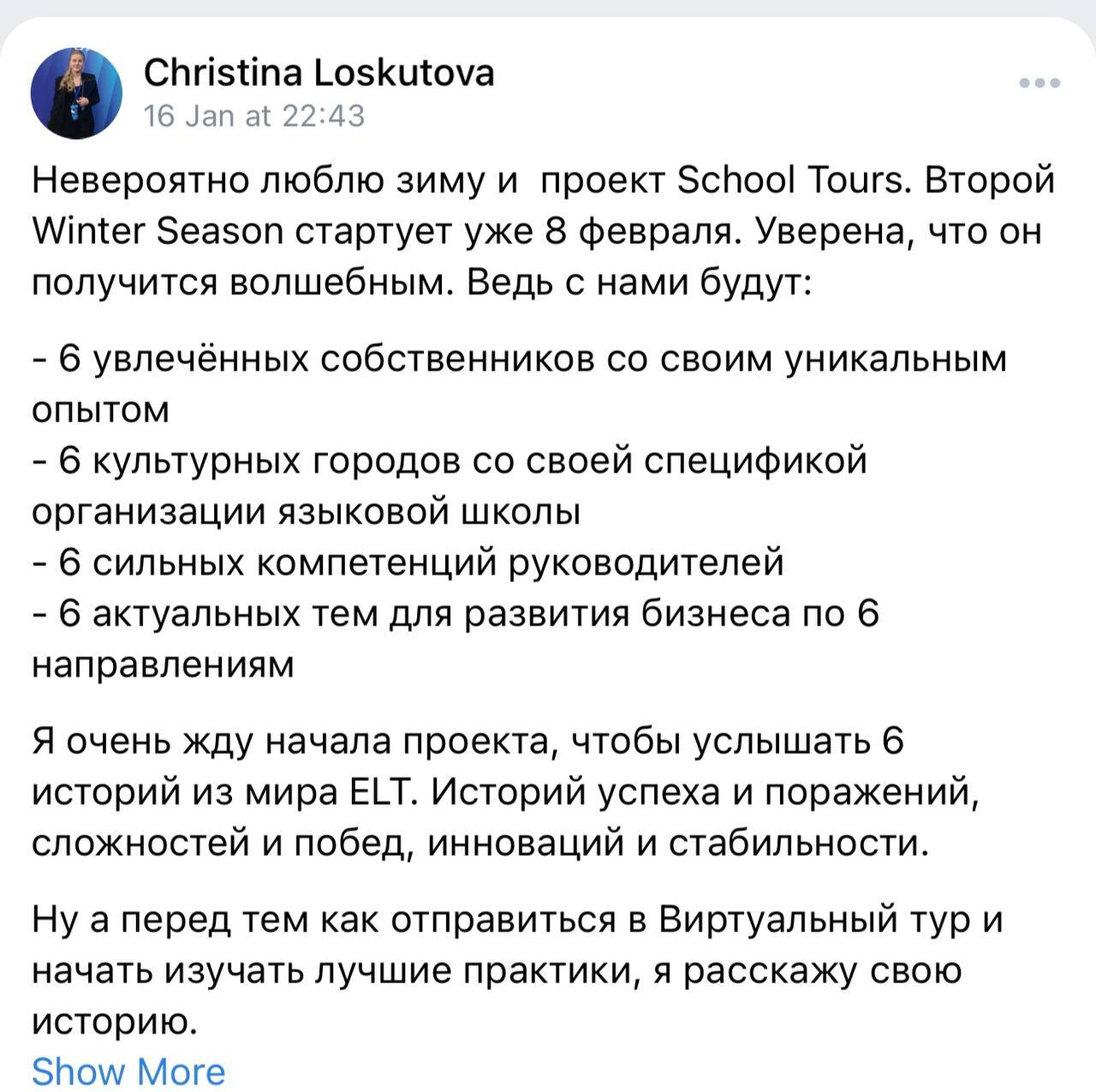 Руководитель школы — Евгения Шилина